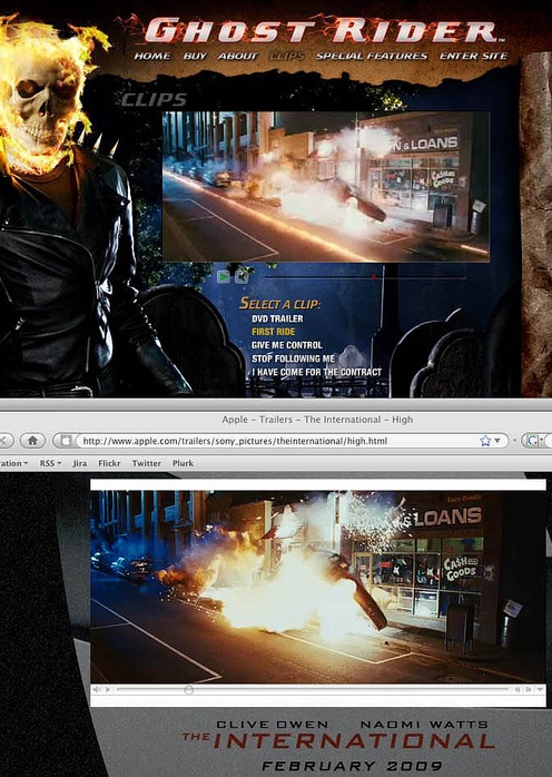 A filmvilágban gyakran előfordul, hogy, egy adott produkció posztere hasonlít valamelyik régebbi alkotásra. De hogy komplett jelenetet hasznosítanak újra az még nekem is új volt mostanáig. Az Internationalban véltek felfedezni egy teljesen ugyanolyan jelenetet, mint ami a Szellemlovasban van. Íme