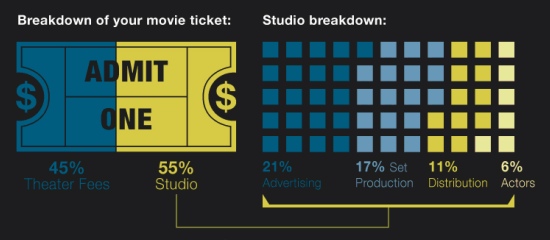 Egy kis filmes érdekesség, a filmipar számokban. Az első képen azt láthatjuk, hogy egy amerikai mozijegy ára hány felé oszlik szét