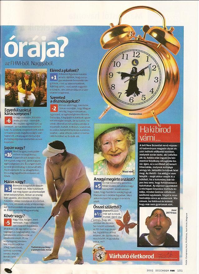 Találtam pár érdekességet, beszkenneltem őket nektek. Az első kettő viccesen megmagyarázza, milyen kutyafajtákra mi a jellemző, a második kettőből ki tudjátok számítani, hány éves korotokig fogtok élni. Én 73. :)